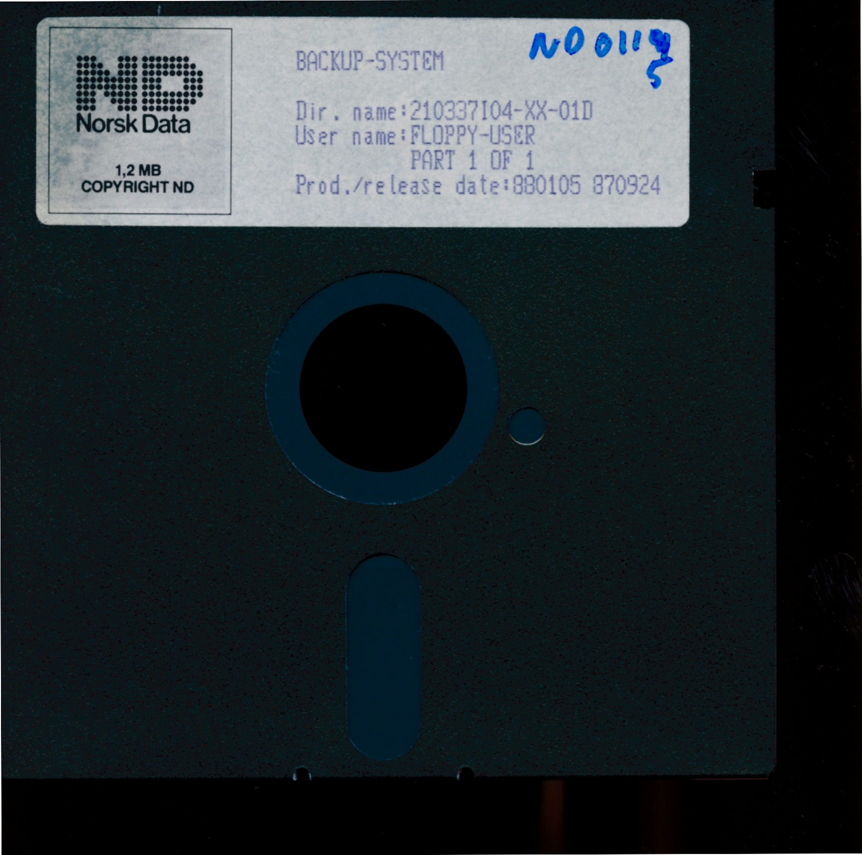 BitStore.Metadata_version: 1.0 BitStore.Access: public BitStore.Filename: ND0115.PNG BitStore.Size: 2767325 BitStore.Format: PNG BitStore.Ident: 30001738:1 BitStore.Digest: sha256:2cd4aa72769c21d44892cbc6ffedda346b0868906a77e8d60fb29786b8c24575 BitStore.Last_edit: 20201016 phk DDHF.Keyword: COMPANY/NORSK_DATA/DISK Image.Summary: 210337I - Backup-System Image.Description: Picture of floppy disk, label reads: BACKUP-SYSTEM Dir. name:210337I04-XX-01D User name:FLOPPY-USER PART 1 OF 1 Prod./release date:880105 870924 *END*